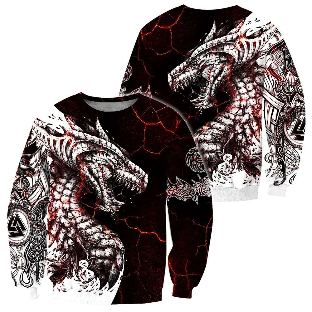 Черно-белая мужская толстовка с 3D-принтом тату-дракона, свитшот, уличная одежда унисекс, пуловер на молнии, повседневная куртка, спортивные костюмы