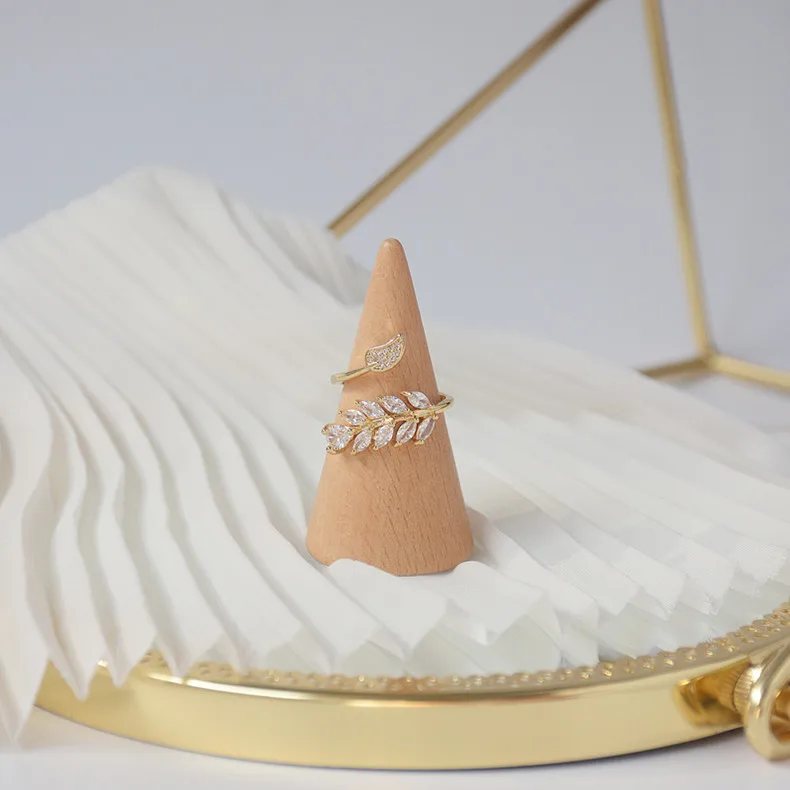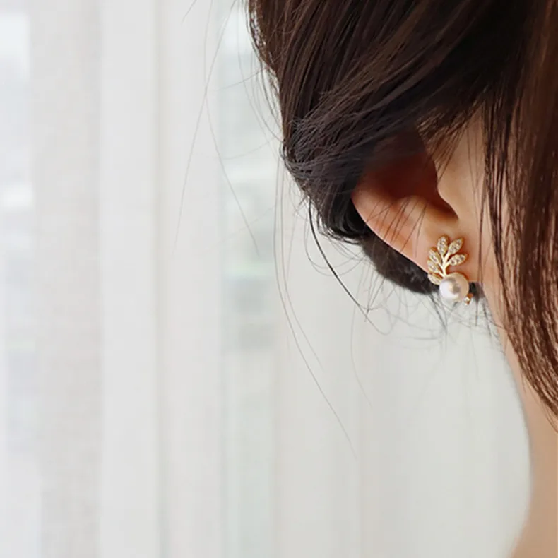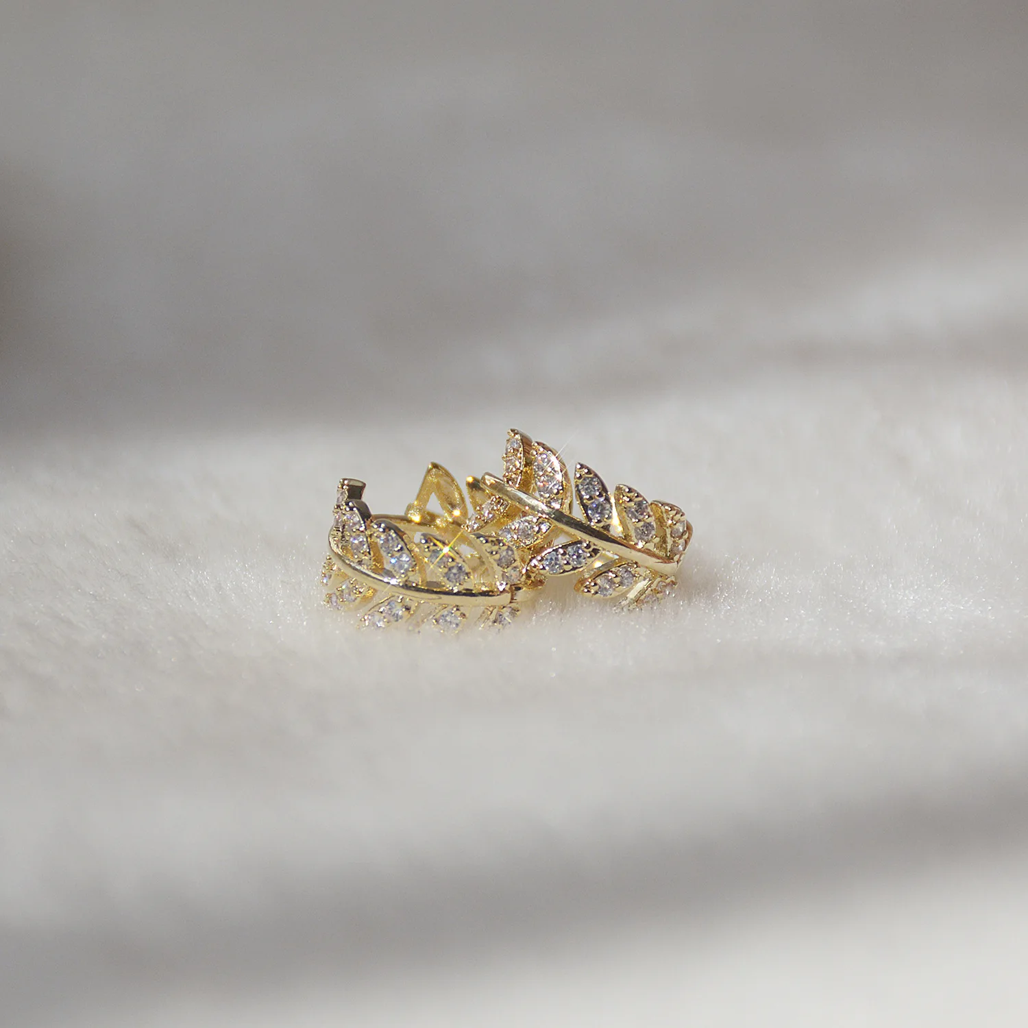 Серьги-гвоздики женские, с круглыми хрустальными листьями, позолоченные, 14 к