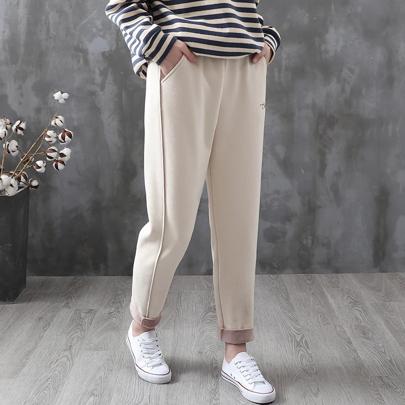 Бархатные однотонные брюки-шаровары, женские зимние тонкие шаровары с высокой талией, плотные шерстяные брюки, женские повседневные брюки в 9 точек, 2020