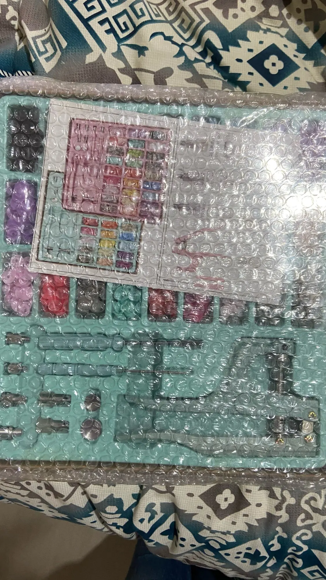 Трек отслеживался.Посылка пришла быстро.Была завёрнута в пупырей.Мелкие детали,отвертки повылетать со своих мест.На вид набор классный.Жаль нет инструкции.И коробка должна быть пластмассовая,а не картон с прозрачной крышкой.