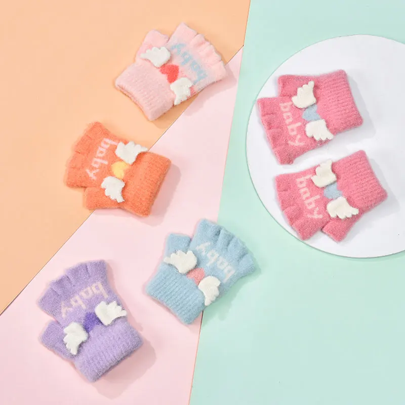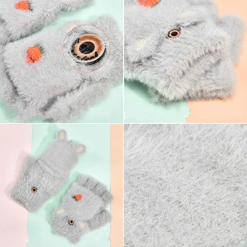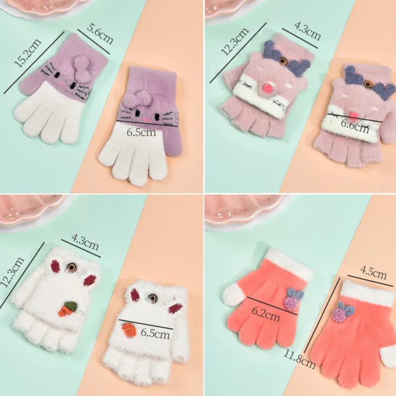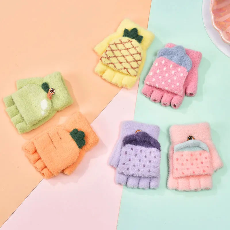 Осенне-зимние детские милые бархатные теплые перчатки с мультяшными животными и фруктами для мальчиков и девочек мягкие перчатки с полупальцами для детей
