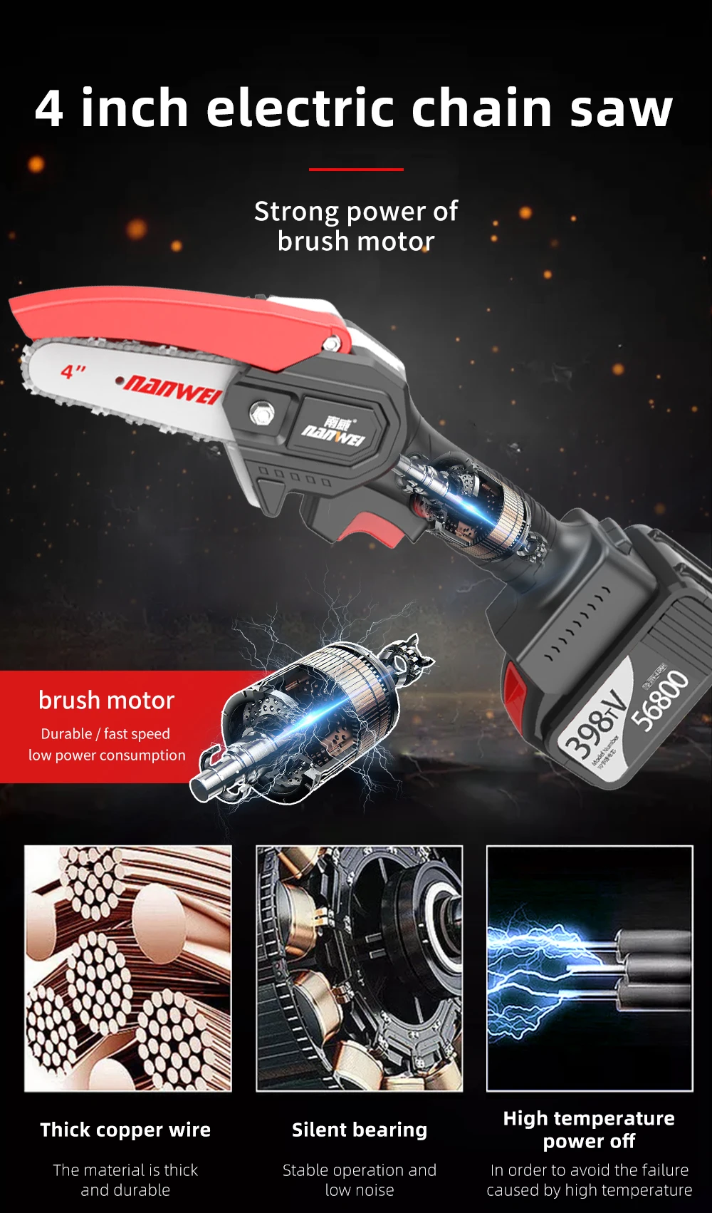 NANWEI Беспроводная бензопила бесщеточный мотор для дома, древесные резак садовые инструменты