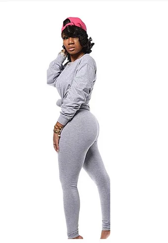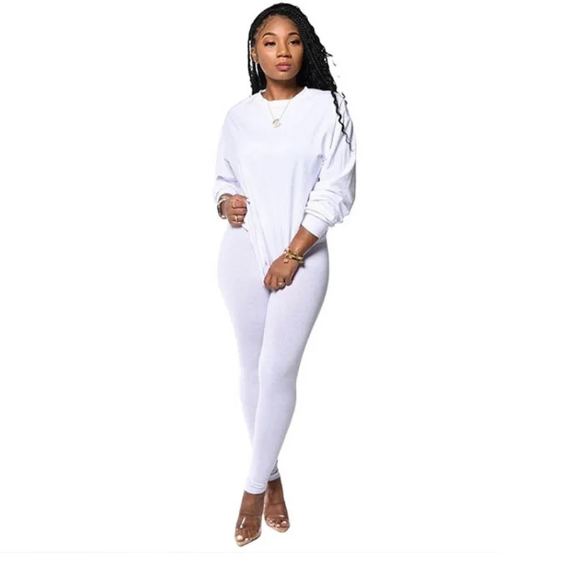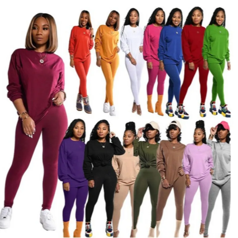 Костюм спортивный женский, однотонный, толстовка с круглым вырезом и узкие длинные брюки, Осень-зима 2021