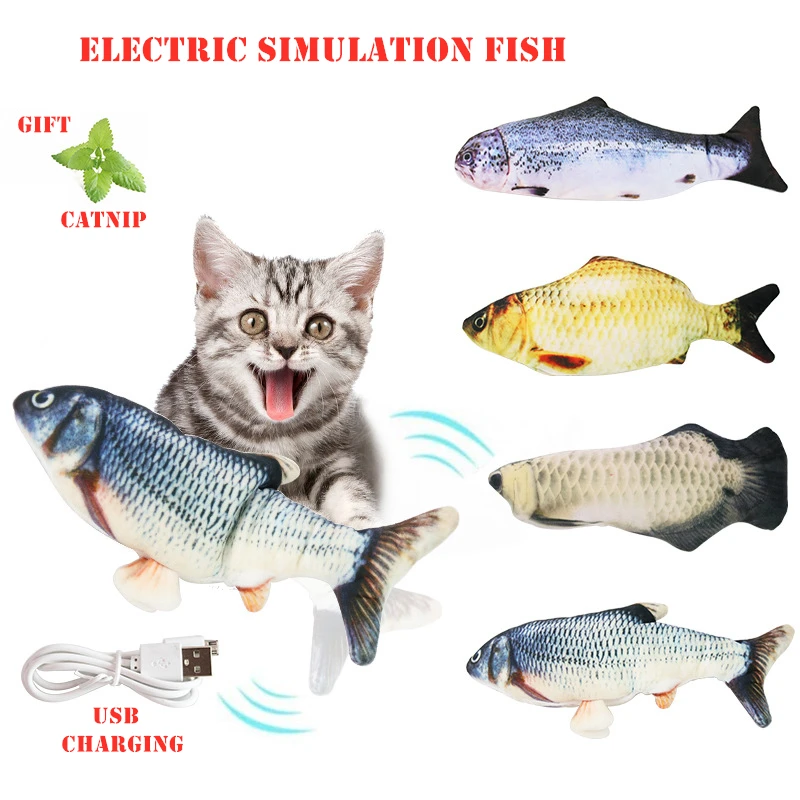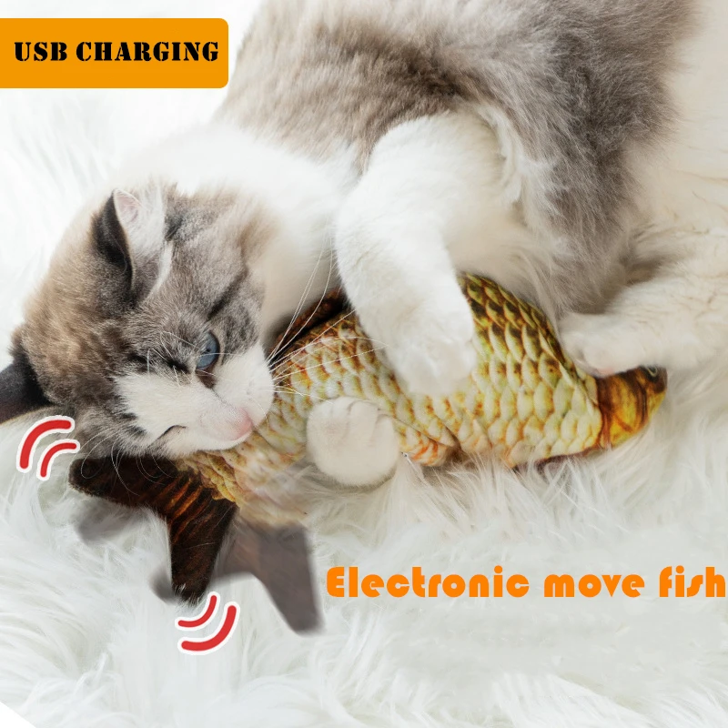 Мягкая игрушка для домашних животных, кошек, Интерактивная игрушка для жевания, забавная игрушка с USB зарядкой, движущаяся мягкая игрушка-фиджет, подарок для рыбы, кошачья мята, собака, товары для домашних животных