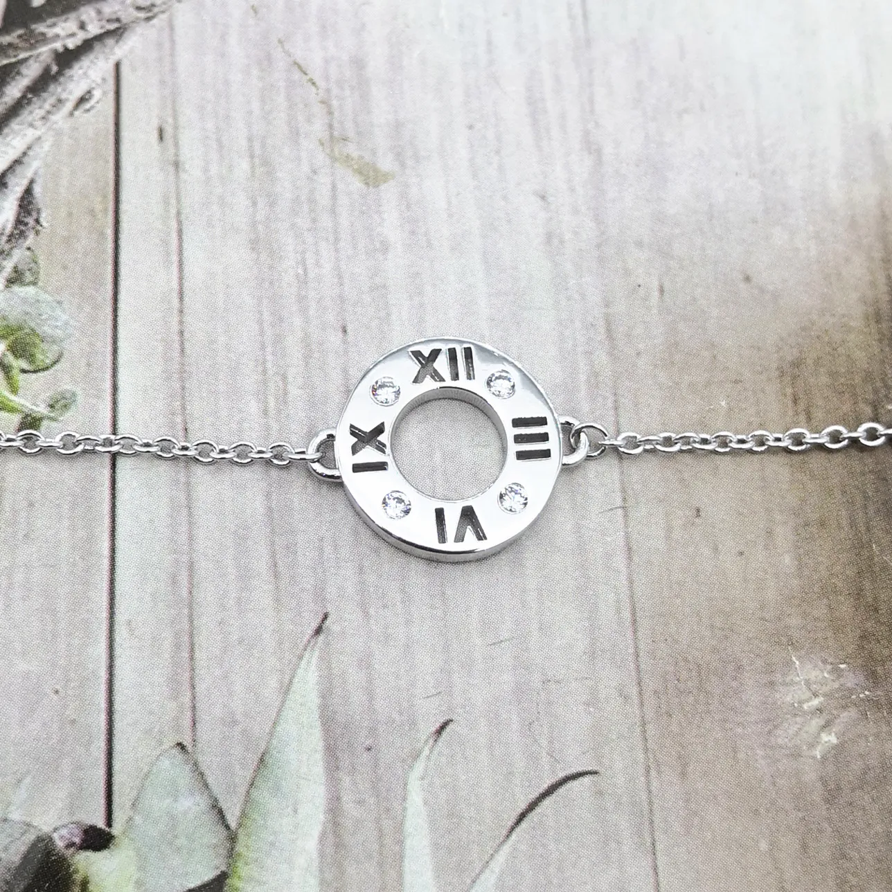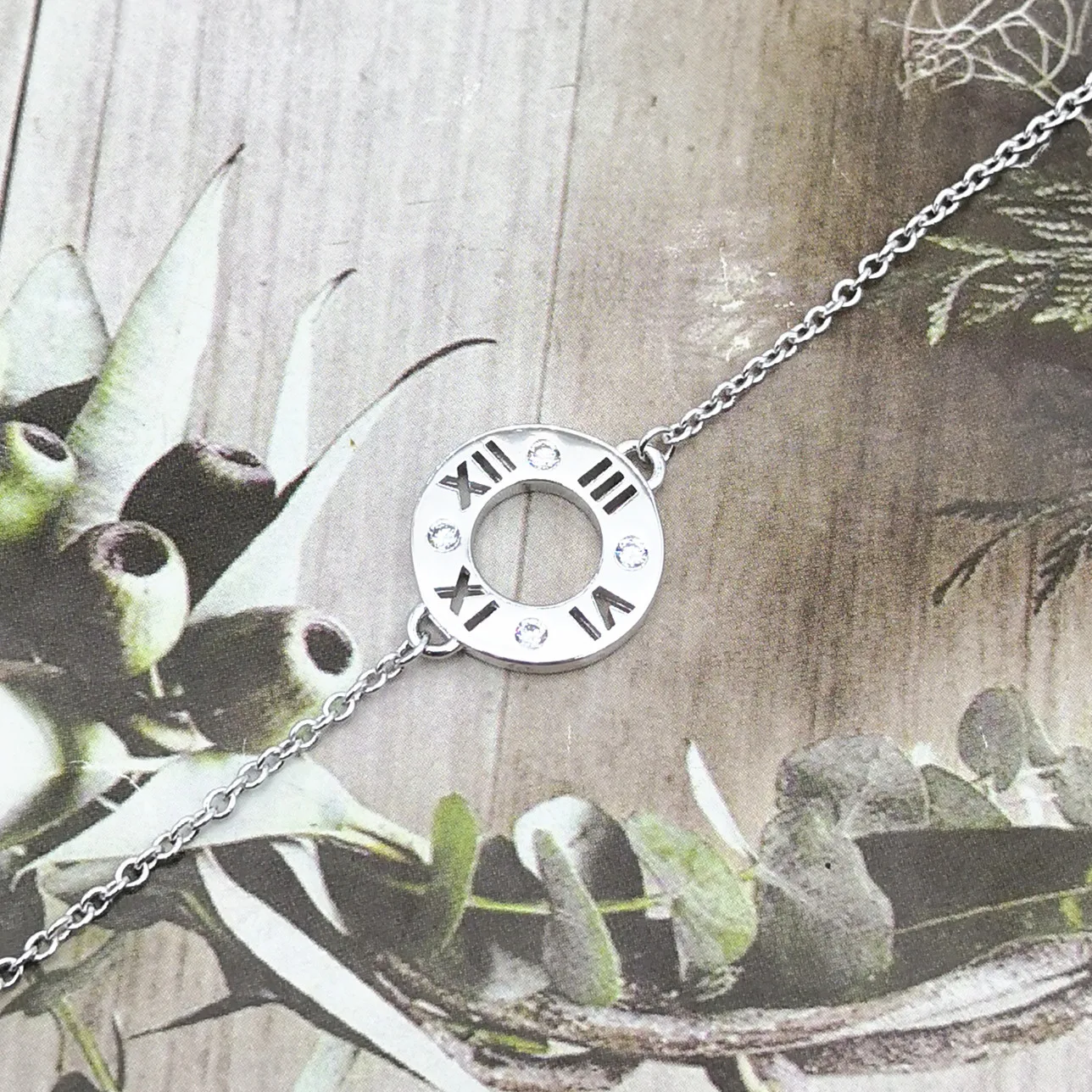 Браслеты из чистого серебра 925 пробы с круговой вставкой и римскими цифрами