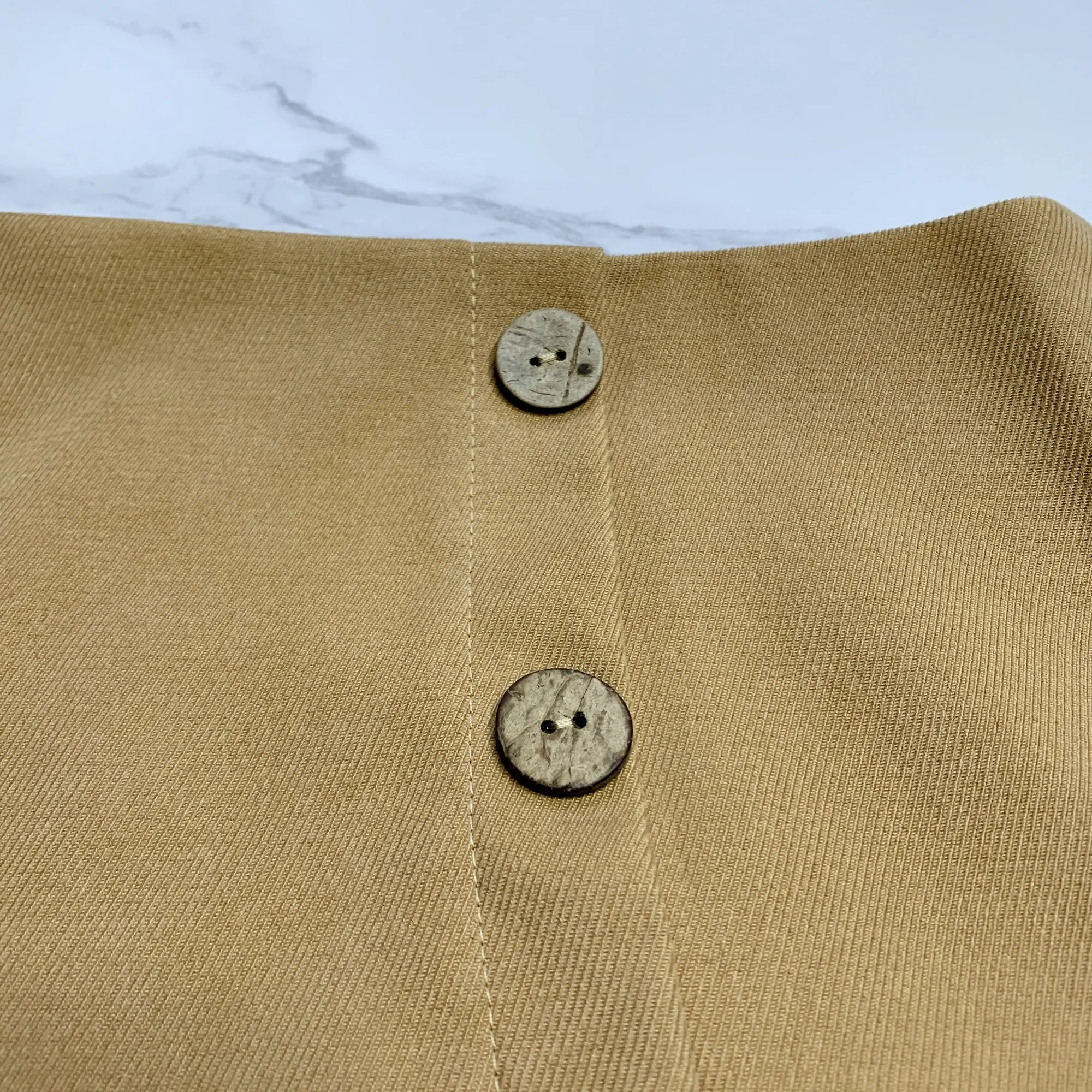 Получила очень классную юбочку! На цену в $12 качество на высоте, так что рекомендую к покупке! Скроена юбка превосходно: с учетом всех изгибов фигуры: даже размер XL, который я выбрала себе, сел как на меня шили! Все края правильно обработаны, вытачки просчитаны верно, молния вшита идеально. В общем, пошив на высший балл! Материал тоже понравился: он как раз такой удачной плотности, что юбку можно носить и зимой, и летом. Она почти не мнется, не тянется, текстура благородная. В качестве украшения деревянные пуговицы, стилизованные под старину. Цвет я выбрала песочный, в живую он как раз как на моих детальных фото. Размер XL подошел на мои параметры: рост 168, вес 59, талия 78, бедра 100. В талии чувствуется всего 1 лишний см. Мне всё понравилось follow me @an_sea.insta