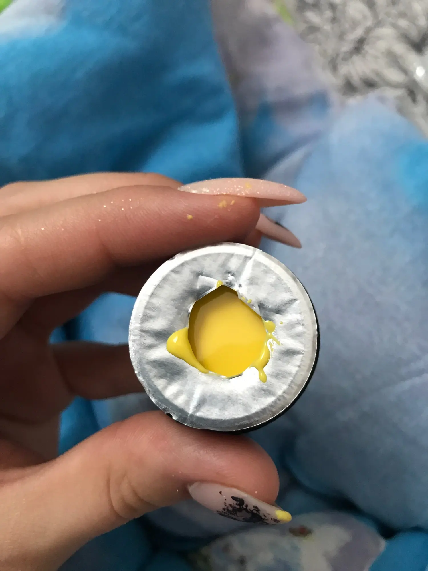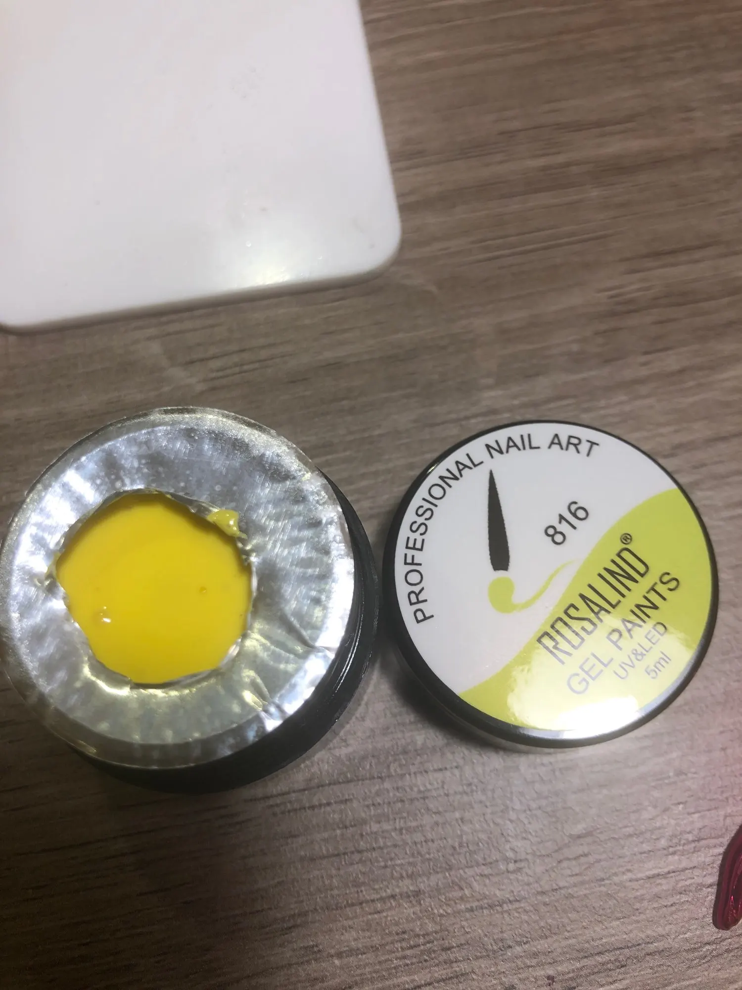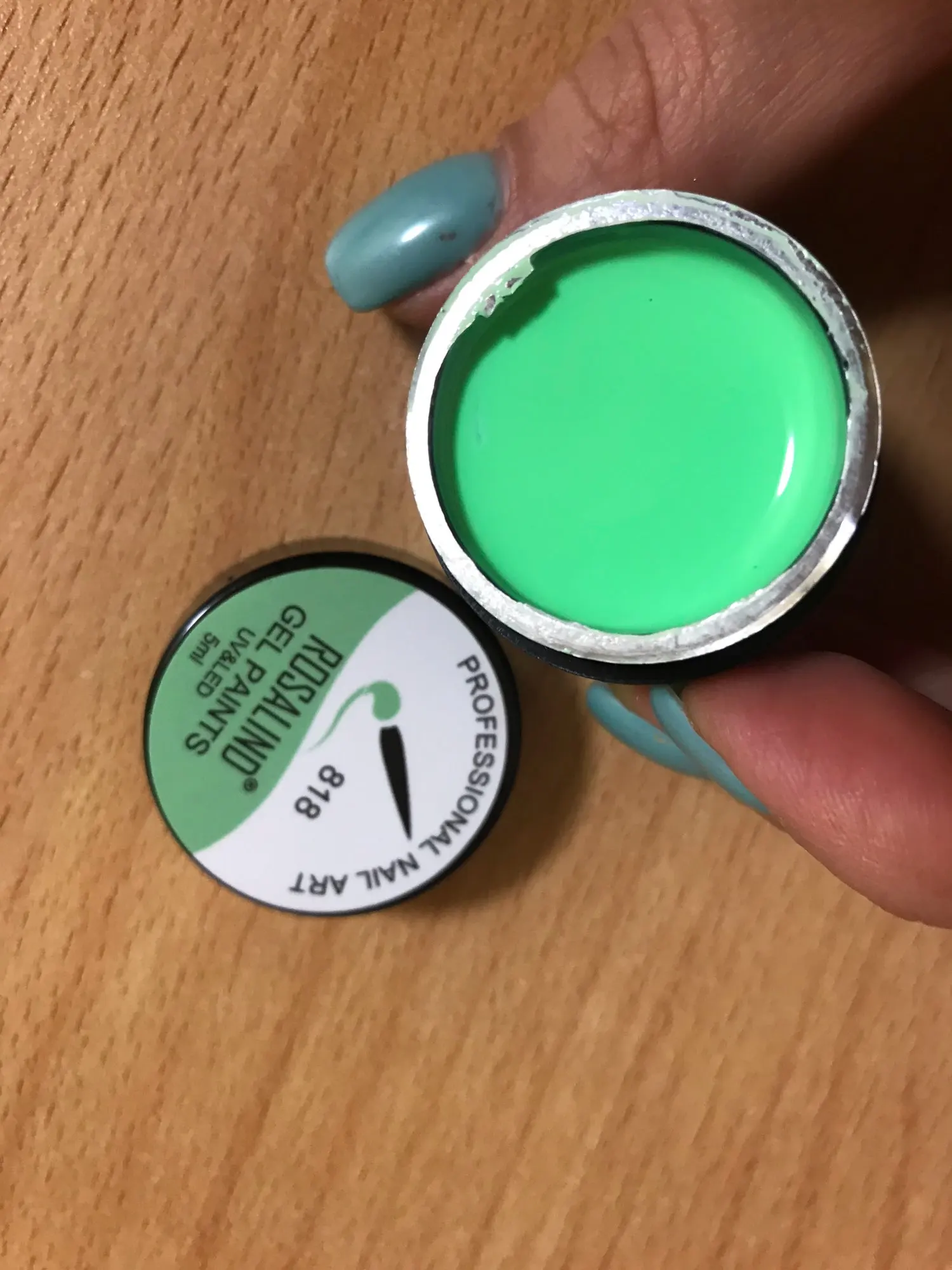 Цвет такой же красивый как на фото продавца. Баночка конечно большая, но наполнение видно по апельсиновой палочке, дно находится на половине высоты баночки (для покупки за 25₽ нормально). В лампе сохнет хорошо. Цвет средней плотности.