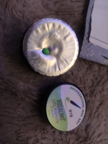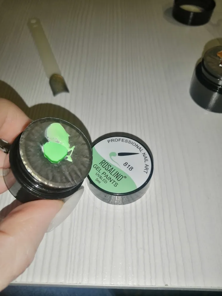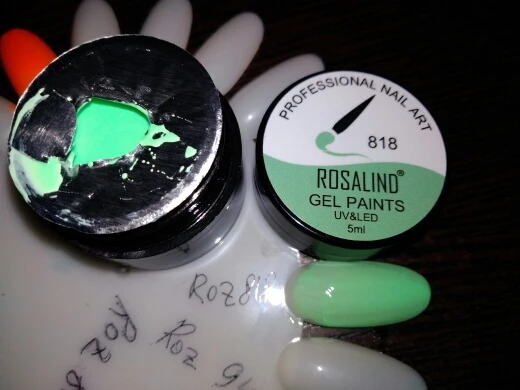 Цвет не плотный, не понравился, на типсе веточки сверху, но они потерялись, пришлось их обрисовать чёрным, отчего этот зелёный потерялся совсем, тёмные веточки это краска тоже розалинд, цвет 940, ягодки - золотой от розалинд