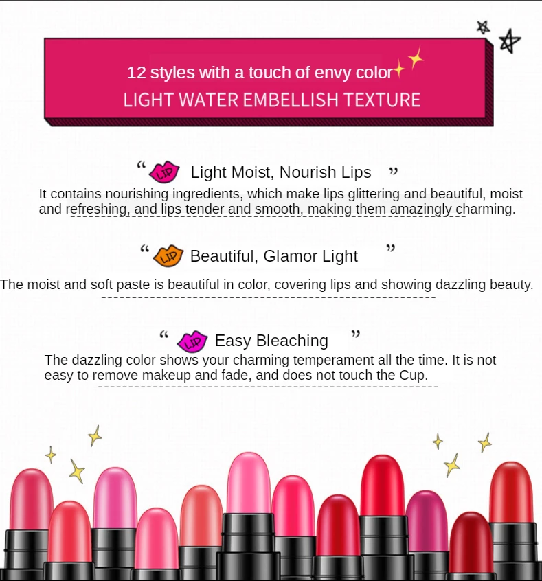 12 шт.компл. губная помада стойкая мини-губная помада блеск для губ крем увлажняющий красота губ сексуальный цвет Модный Макияж для губ 45 г