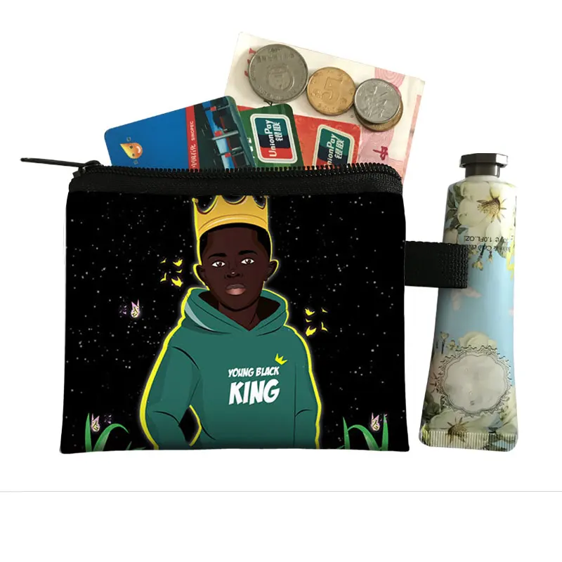 Кошелек для мелочи с мультяшным принтом для мальчиков-подростков, черный Детский кошелек в американском и африканском стиле, Детская кредитница для карт и ключей, Детские сумочки для мелочей