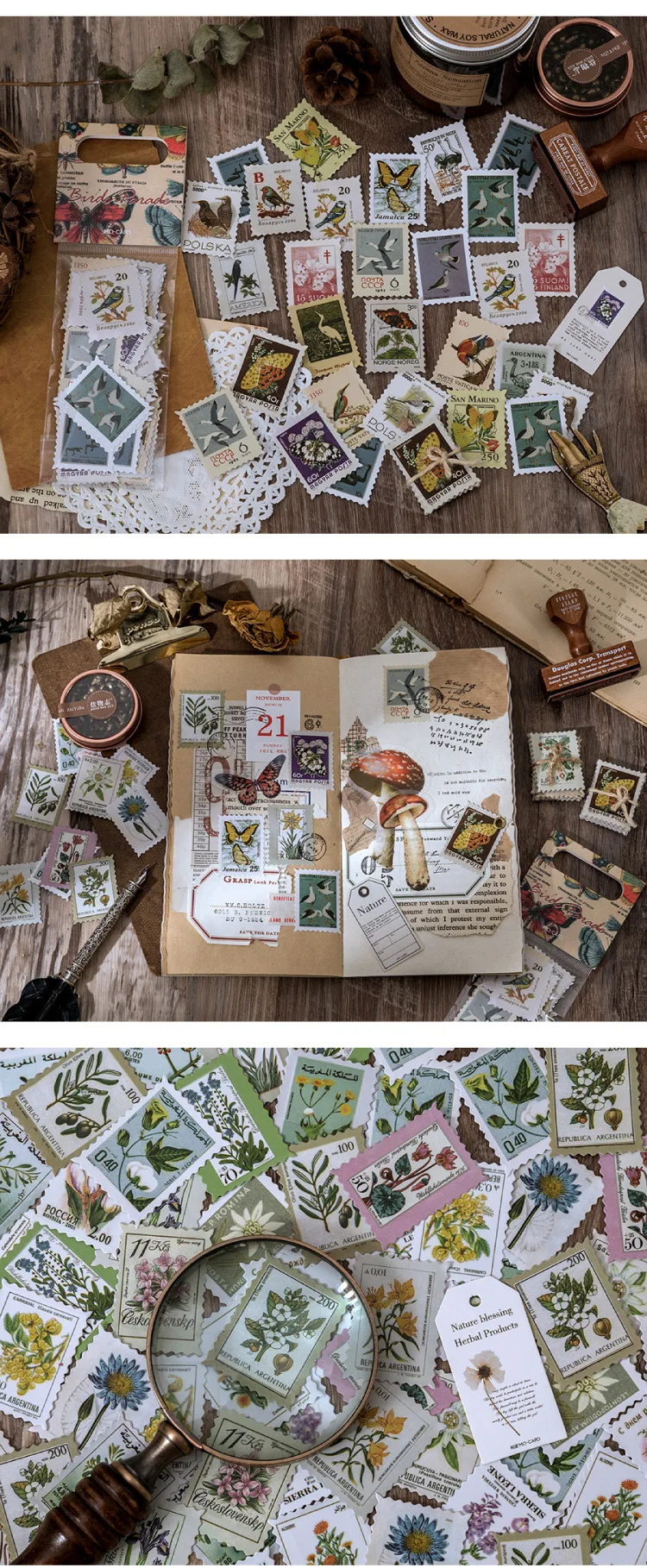 60 шт.лот винтажные наклейки для штампов, упаковка, эстетические на...