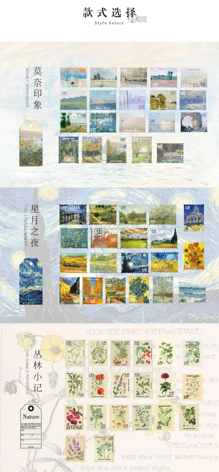 60 шт.упак. Van Gogh винтажные почтовые штампы Декоративные наклейки для скрапбукинга конвертов журнал дневника планировщика