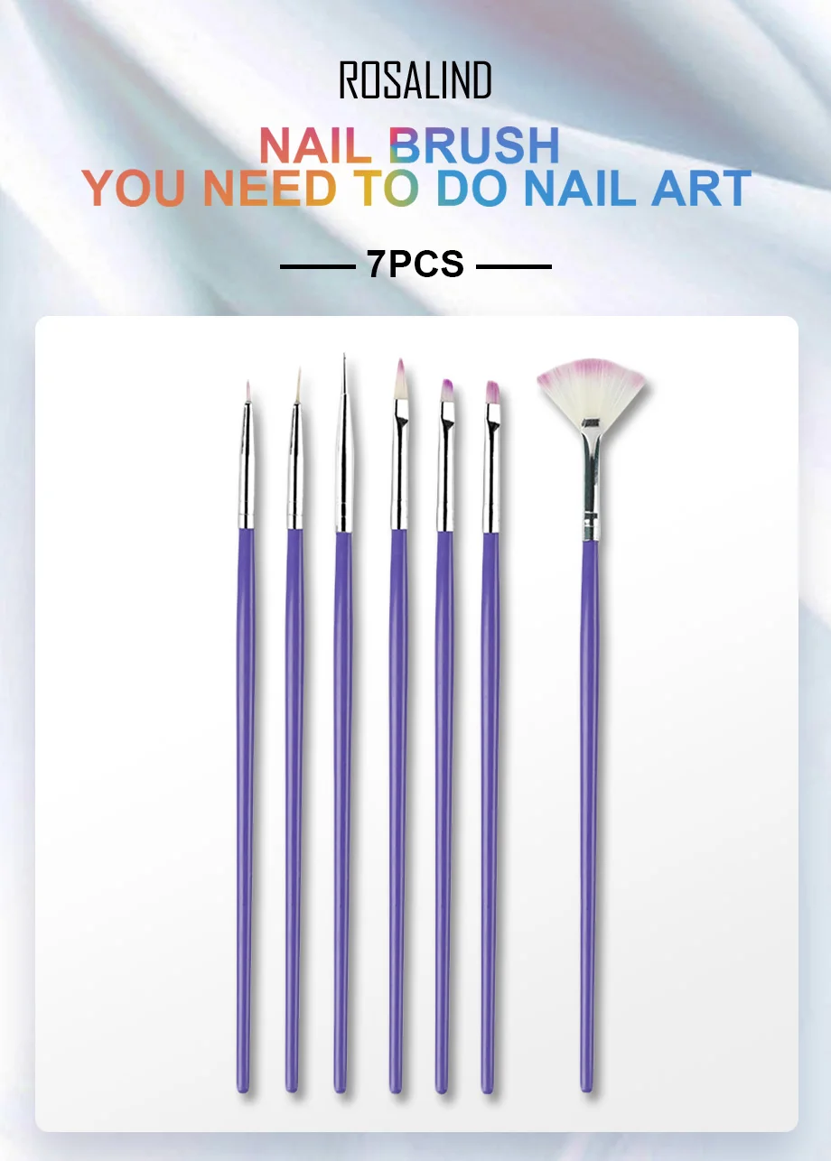 Кисти для ногтей ROSALIND, 7 шт., все для маникюра, инструменты для дизайна ногтей, Наборы инструментов для рисования геля, гибридные Лаки, набор кистей для самостоятельного изготовления геля для ногтей