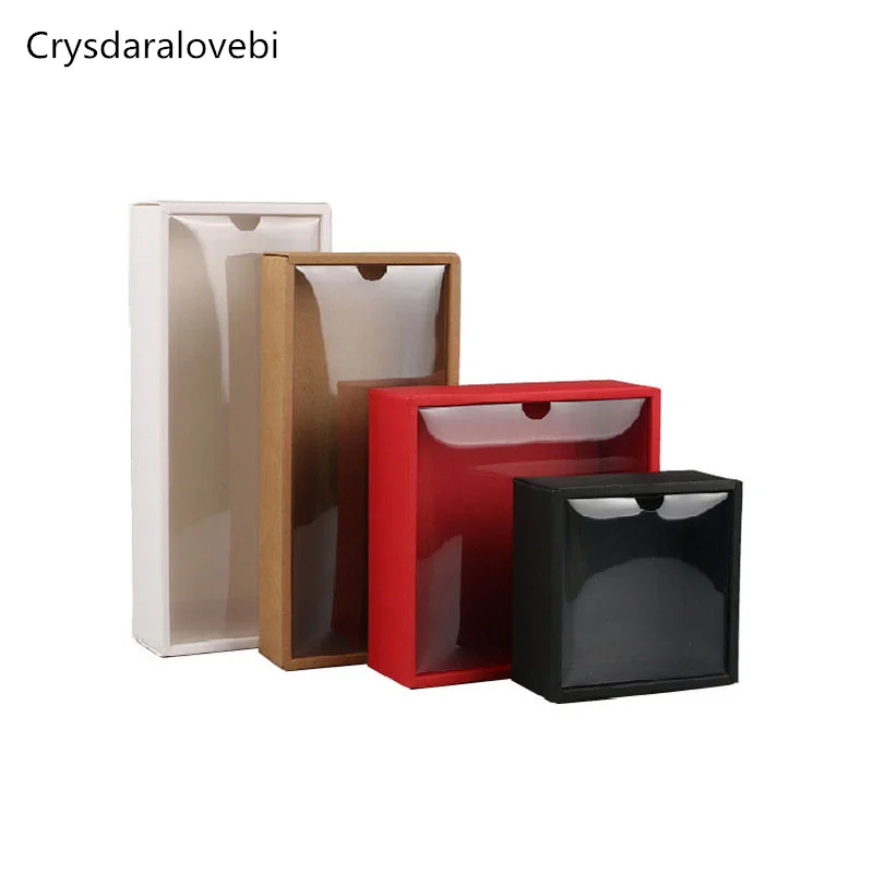 Белая Подарочная коробка из крафт-бумаги с прозрачным окном из ПВХ, 10 шт., черные коробки для торта, красные для свадебного печенья коробки для упаковки конфет