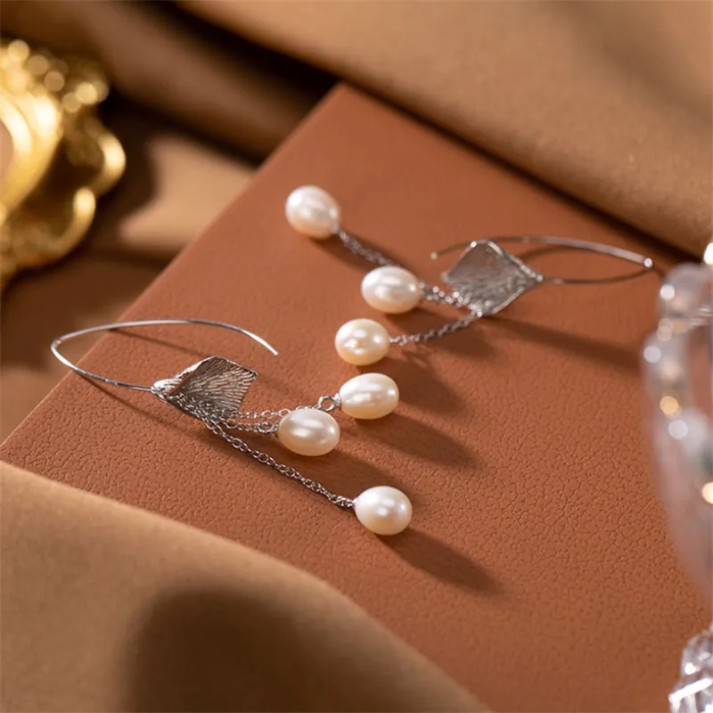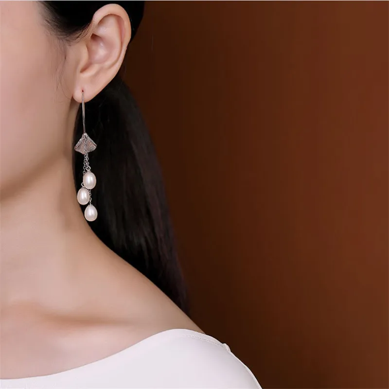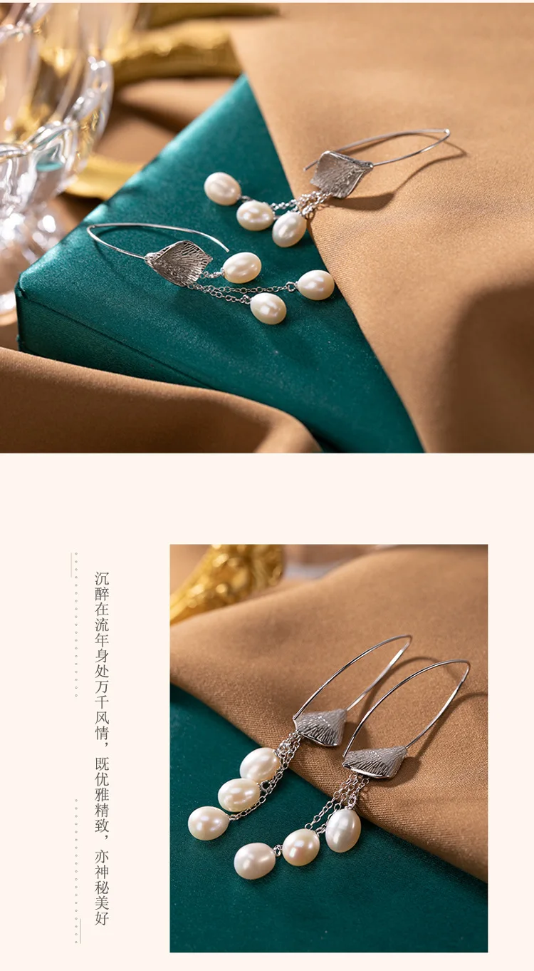 Uglyless романтический французский Стиль длинные с цветами и кистями серьги для женщин с натуральным жемчугом элегантное платье ювелирные изделия 925 серебряные серьги