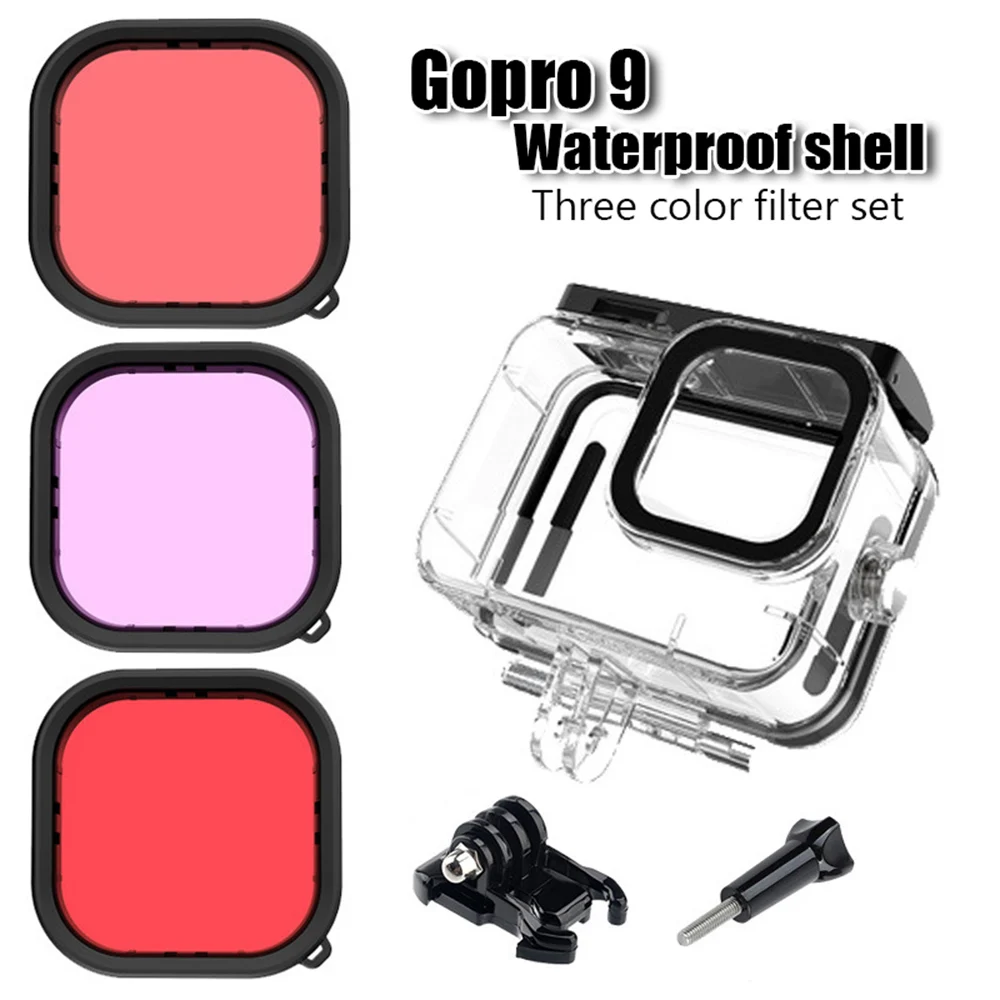 Водонепроницаемый чехол для GoPro hero 9, защитный чехол для фильтра триколор для дайвинга