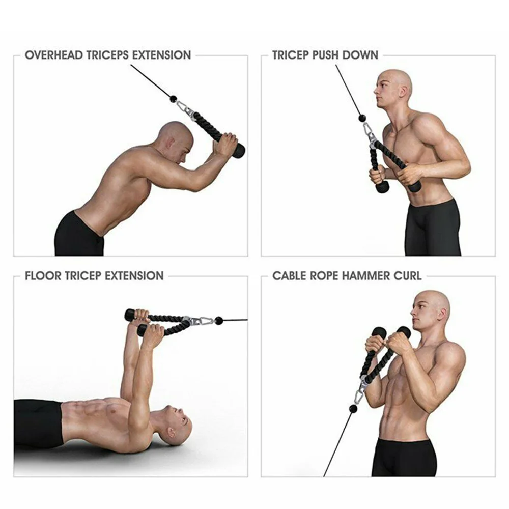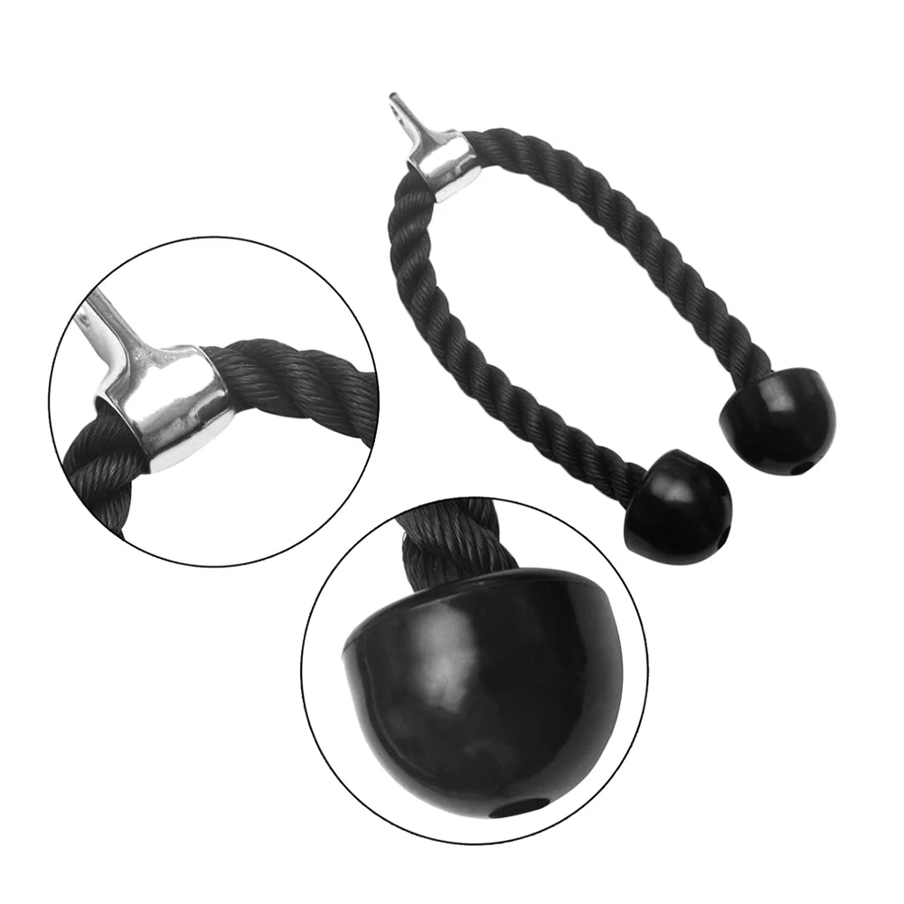 Особенности: Практичный Веревка для Трицепсов может эффективно помочь вам построить укрепление трицепсов, бицепсов, плеч и мышц живота. Простота в эксплуатации Просто прикрепите весовой кабель к стальному адаптеру, отсутствие сложного процесса установки и эксплуатации, практично и удобно. Прочный Изготовлен из высококачественного нейлона, износостойкий и прочный, имеет длительный срок службы. Безопасный Он прошел испытания на прочность и износостойкость, обладая тяжелым весом и надежностью в использовании. Область применения Широко подходит для профессионального тренажерного зала и домашнего использования, хороший выбор инструмента для фитнеса. Спецификация: Тип: веревка для Трицепсов Количество: 1 шт. Материал: нейлон Цвет: черный Размер: 70 см/27,51 дюйма Вес нетто: 740 г/26,1 унции Комплектация: 1 * веревка для Трицепсов