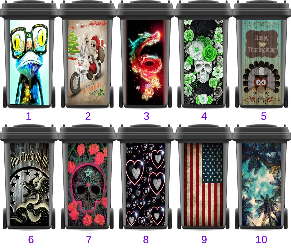 Абстрактная живопись клей Водонепроницаемый фестивальный стикер этикеты Череп продлить корзина для мусора крышка стикеры Ktichen 120 л 240 л