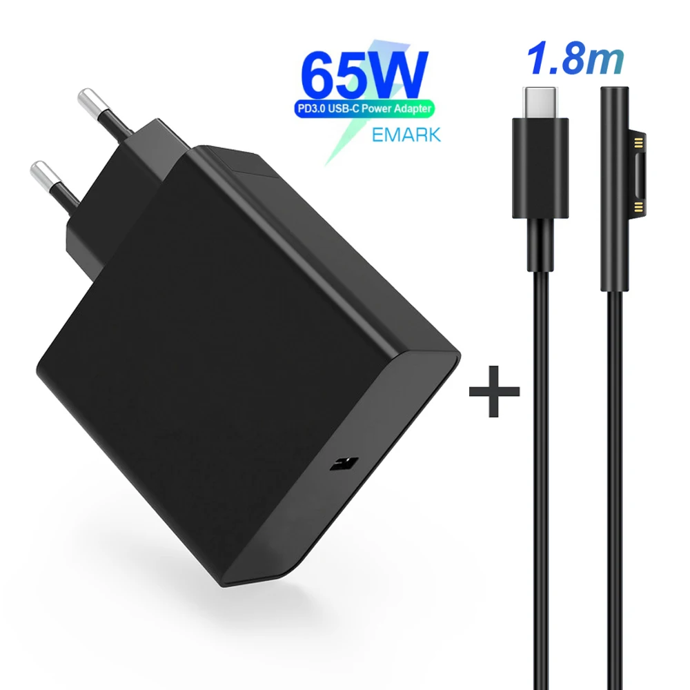 Черный 65 Вт USB-C Зарядное устройство с PD до поверхности кабель (1,8 м)