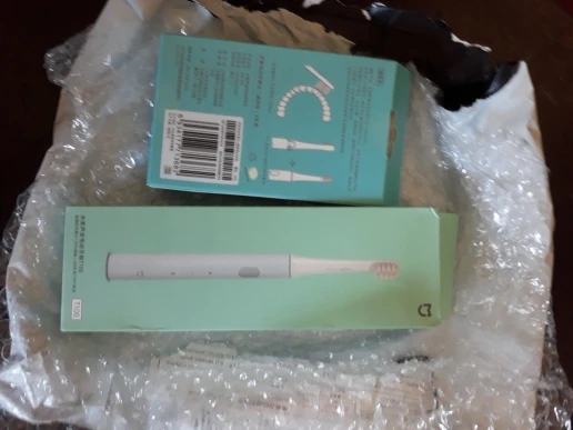 Коробки с щеткой и насадками пришли осень мятые, но т. к. брала для себя это не важно, всё что внутри коробок целое. Если будете брать на подарок имейте ввиду. В комплект с щеткой идём т провод для зарядки (без вилки, это есть в описании товара) и одна насадка. Доставка в МО около трёх недель. Для понимания размера фото рядом с обычной щеткой.