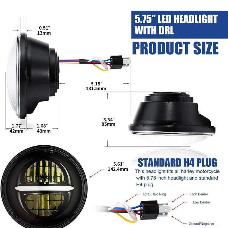Светодиодные фары 5,75 дюйма, БлижнийДальний свет, гало для триумфа...