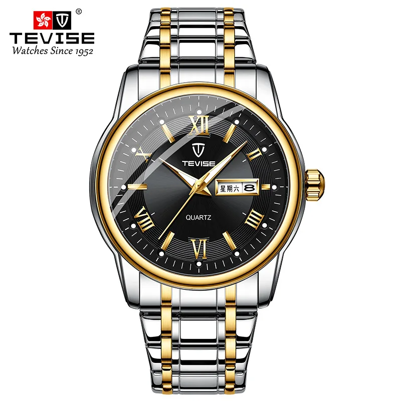 Часы TEVISE Мужские кварцевые, водонепроницаемые, светящиеся, с датой и неделей