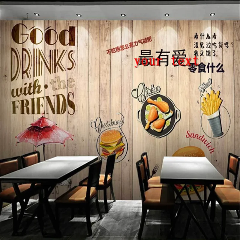 Жареная курица пиво гамбургеров фаст-фуд Ресторан деревянная доска фон промышленный Декор настенная бумага Снэк бар настенная бумага 3D