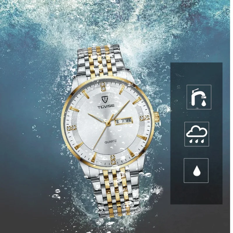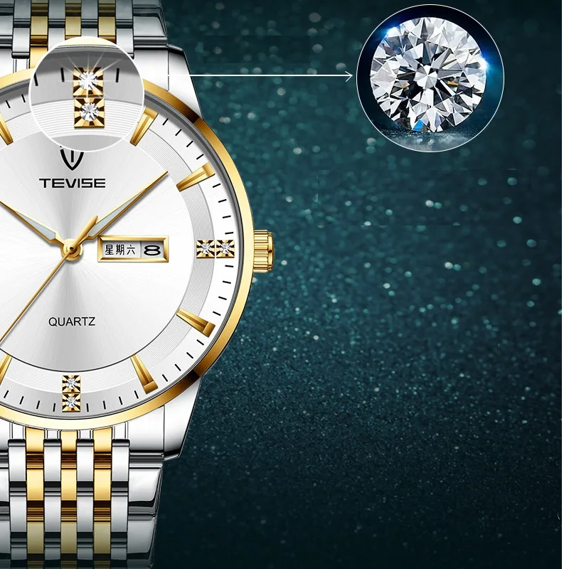 Часы TEVISE Мужские кварцевые из нержавеющей стали, повседневные модные наручные, с календарем, со стразами и цирконием, с коробкой, инструмент