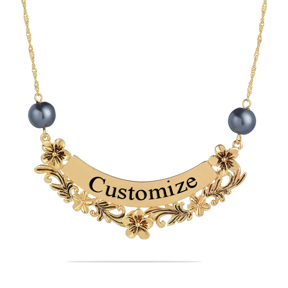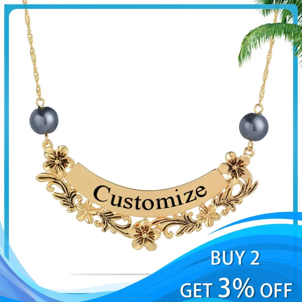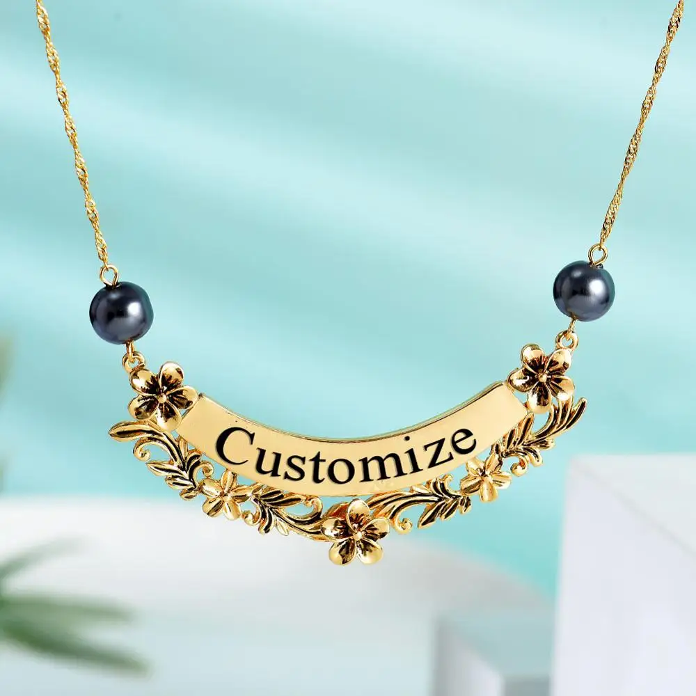 Модное ожерелье с цветами, золотистая цепочка с именем под заказ, чокер с черным жемчугом, персонализированные подвески с буквами, ожерелья для женщин, друзей