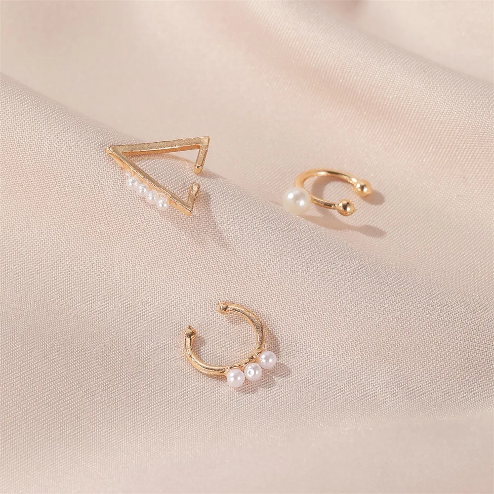 Серьги-клипсы золотистого цвета с искусственным жемчугом, 3 шт.