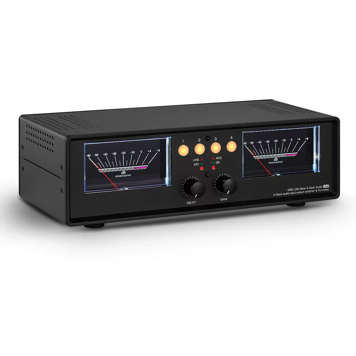 Переключатель 4-в-1 с индикатором уровня звука VU2 MIC + LINE Dual VU Meter DB Panel Audio Splitter Box