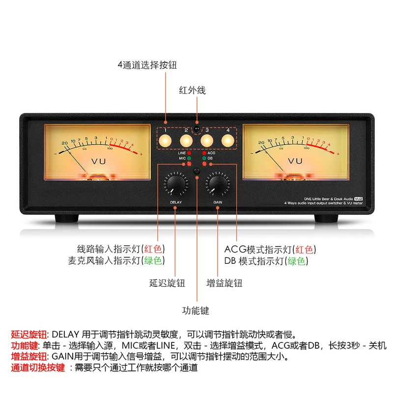 Это многофункциональный измеритель уровня VU, который интегрирует 4-полосный аудиопереключатель + двойной большой измеритель уровня VU, который может удовлетворить потребности большинства покупателей. Покупатели могут легко подключаться к нескольким источникам звука, чтобы поделиться набором больших измерителей уровня VU для отображения музыкальных эффектов. Больше не требуется повторно подключать и отключать кабели, что очень удобно управлять вашей аудиосистемой. Также поддерживает дистанционное управление.