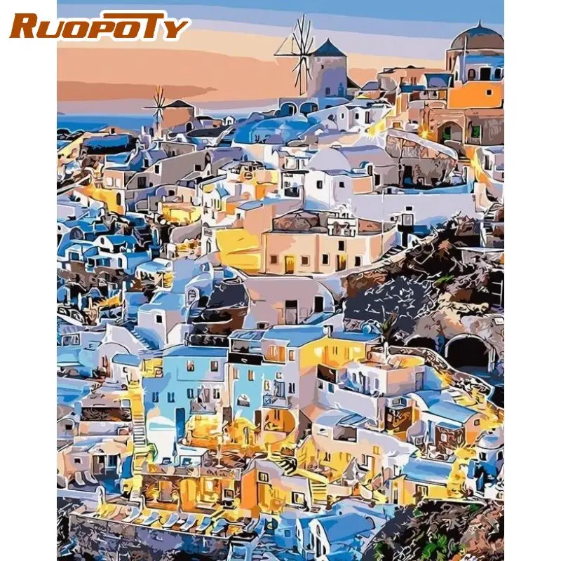 RUOPOTY Красочный дом пейзаж живопись по номерам ручной работы уник...