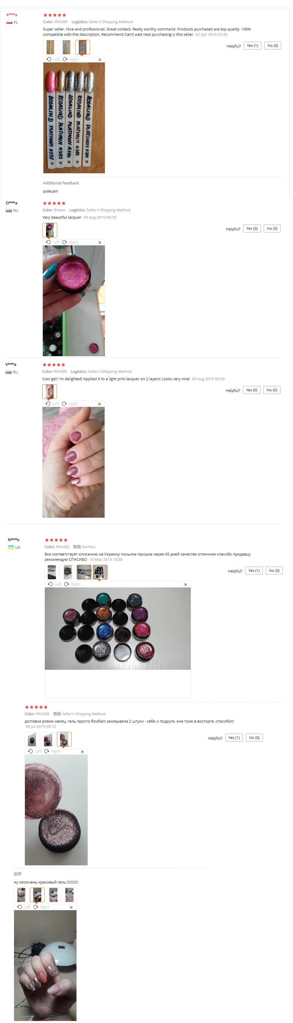 заказывала 28.01 - пришло 21.04 в Сибирь, Кузбасс. достаточно густой, плотный, не полосит. полностью просыхает в led-лампе за 60 сек. на удивление оказался очень достойный продукт за такие смешные деньги. на типсе нанесён в два слоя