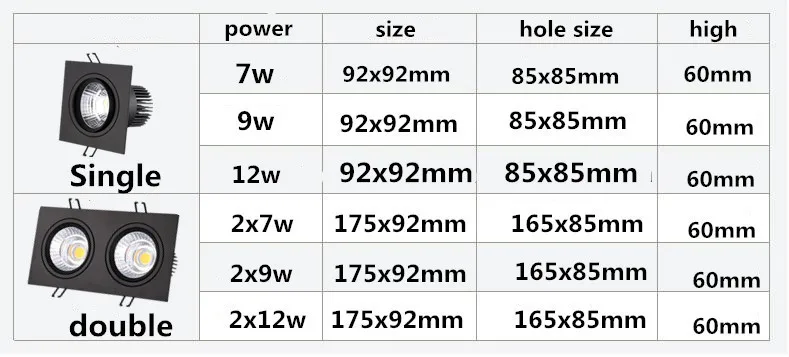 Встраиваемая потолочная светодиодная лампа, точесветильник светильник с COB даунлайт с регулируемой яркостью, одинарный, двойной, квадратный, 220 В, 110 В