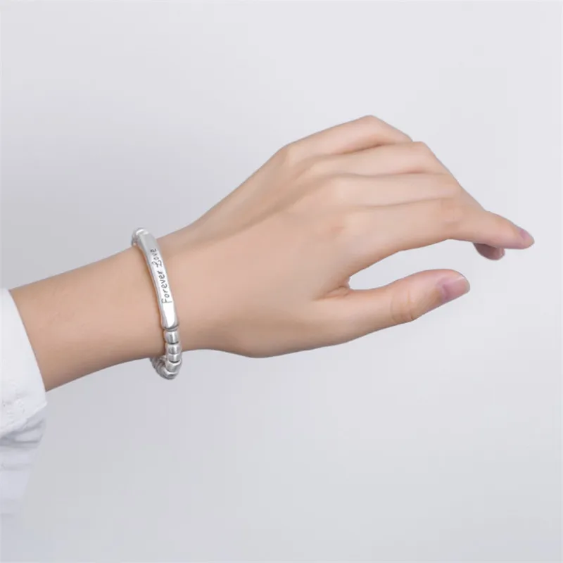 Uglyless колько Forever LOVE подарки минималистский реальные 990 чистого серебра, браслеты для женщин, вставку внутрь эластичного ремешка браслет Простые Модные ювелирные изделия