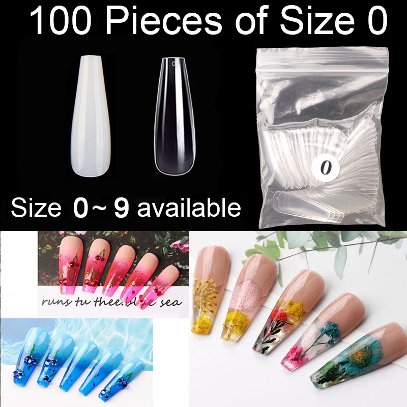 Накладные ногти, супер длинные, накладные ногти определенного размера, 100 шт. накладных ногтей балерины, полное покрытие, доступны размеры от 0 до 9