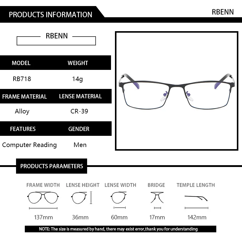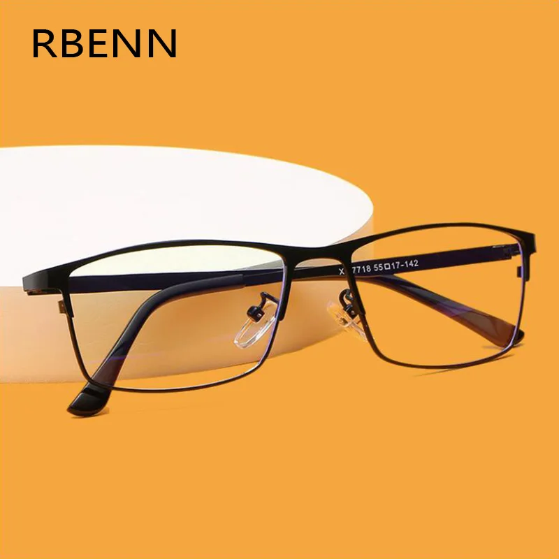 Очки для чтения RBENN мужские, металлические, с полной оправой из нержавеющей стали, с защитой от сисветильник света, деловые, дальнозоркость, оптические линзы, + 0,75, 1,5, 1,75