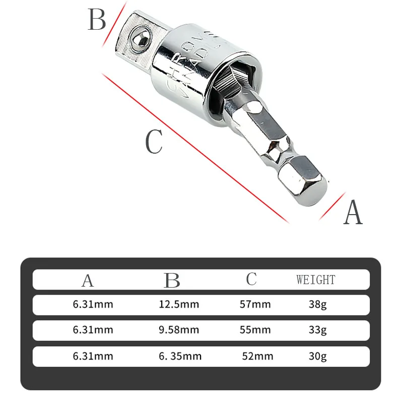 Адаптер для электрической дрели для 1/2 "3/8" 1/4 "ударного драйвера с шестигранным хвостовиком до квадратного гнезда сверла вращающийся удлинитель
