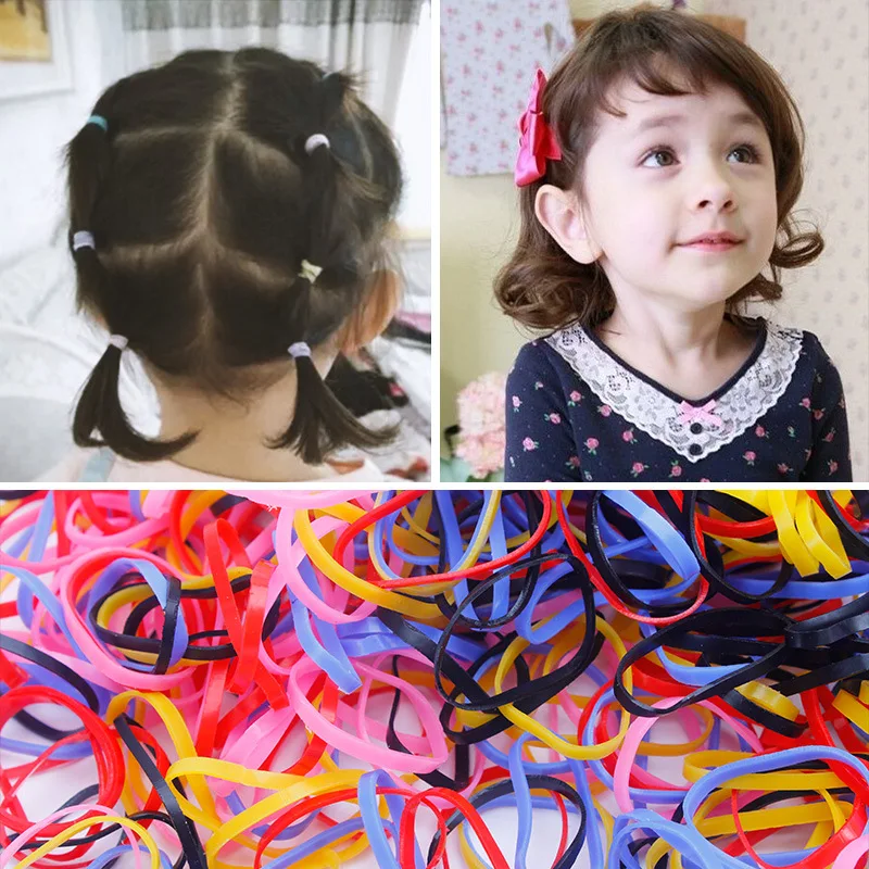 1000 шт., милые разноцветные эластичные резинки для волос для девочек