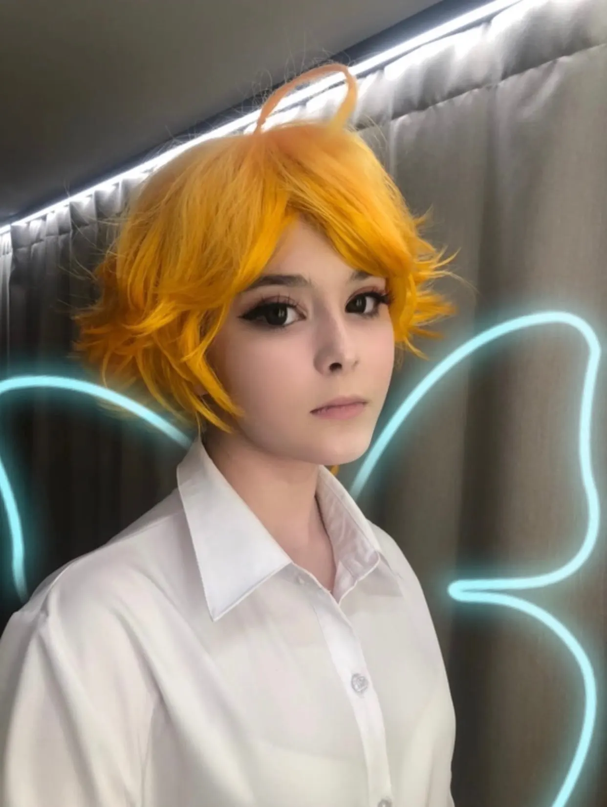 Парик Эмма короткий золотой градиент темно-желтый парик аниме обещанный неверлэнд волосы для косплея синтетический парик для косплея 40 см