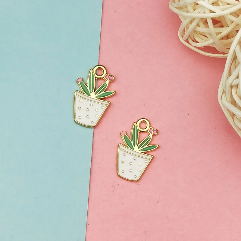 10 шт./лот DIY сплав металл эмаль кактус амулеты Мода в горшке суккуленты растения подвески для браслета серьги ювелирные изделия