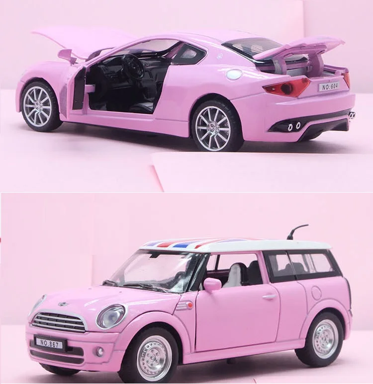 Модель автомобиля Diecat, металлическая Рождественская игрушка розового цвета с функциями, 132