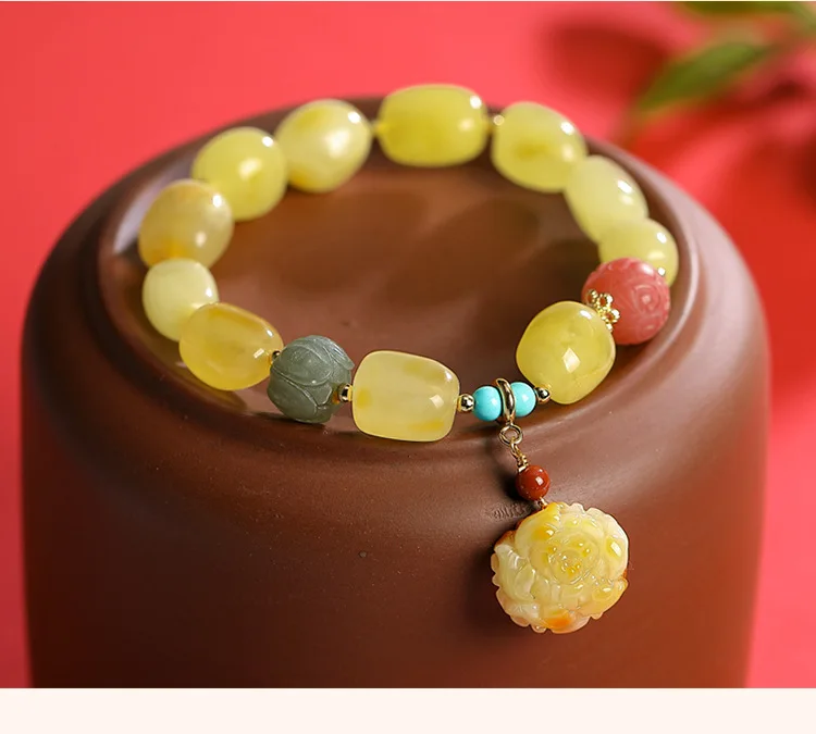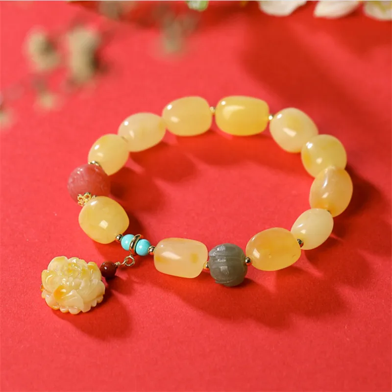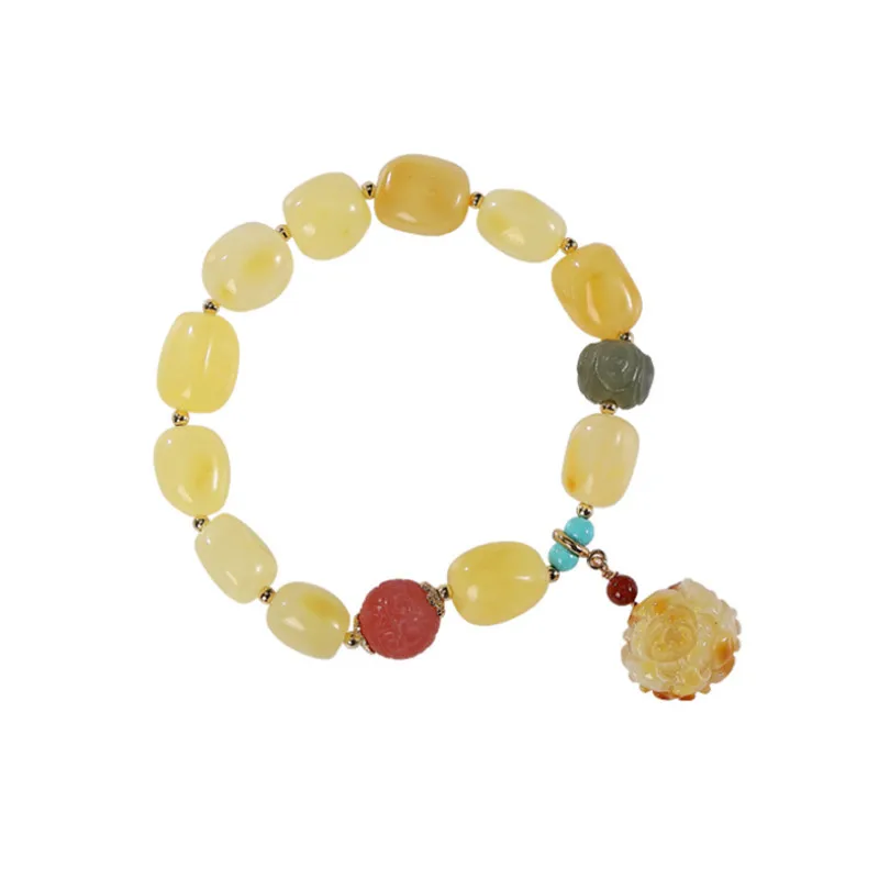 Ювелирные изделия для женщин Uglyless с драгоценными камнями, бисероплетение, эластичный шнур, браслеты из натурального янтаря, пчелиный воск, лотос, серебро 925 пробы