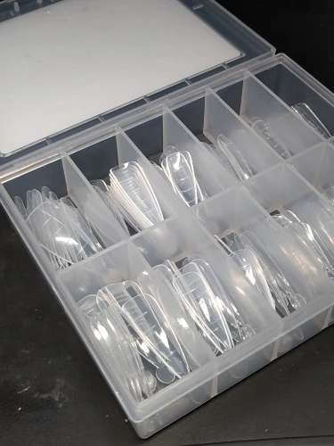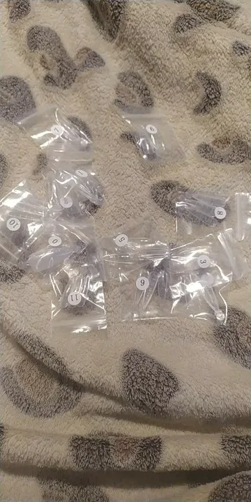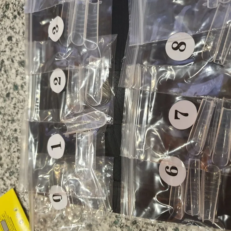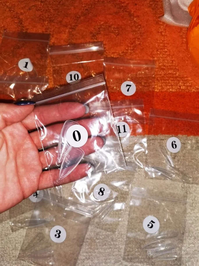 Формы качественные, но не могу приноровиться. Для педикюра идеально подошёл размер 0 на большой ноготь, для маникюра самой себе трудно закрепить, хотя покупала у этого же продавца зажимы прозрачные для поддержки. Гель под формами схватывается очень быстро, сами формы удобные за счёт кружочка сверху, снимать и ставить легко. Продавца рекомендую