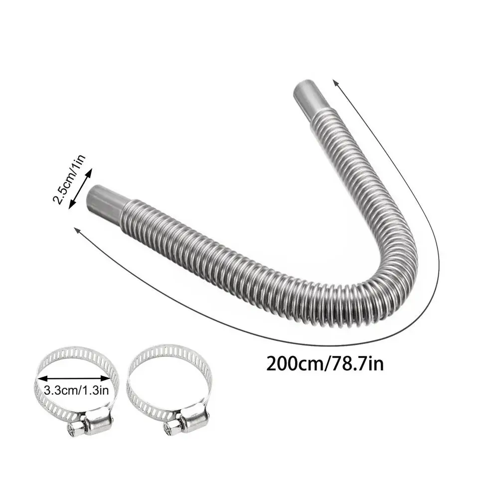 Спецификация:Цвет: серебристыйМатериал: нержавеющая стальДиаметр выхлопной трубы: около 2,5 смДлина (прибл.): 100 см/150 см/200 см/250 см (300/39,37/59,05*78,74/98,25 дюйма)