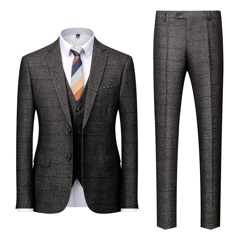 Мужской Клетчатый костюм-тройка TIAN QIONG, черный облегающий Сваде...