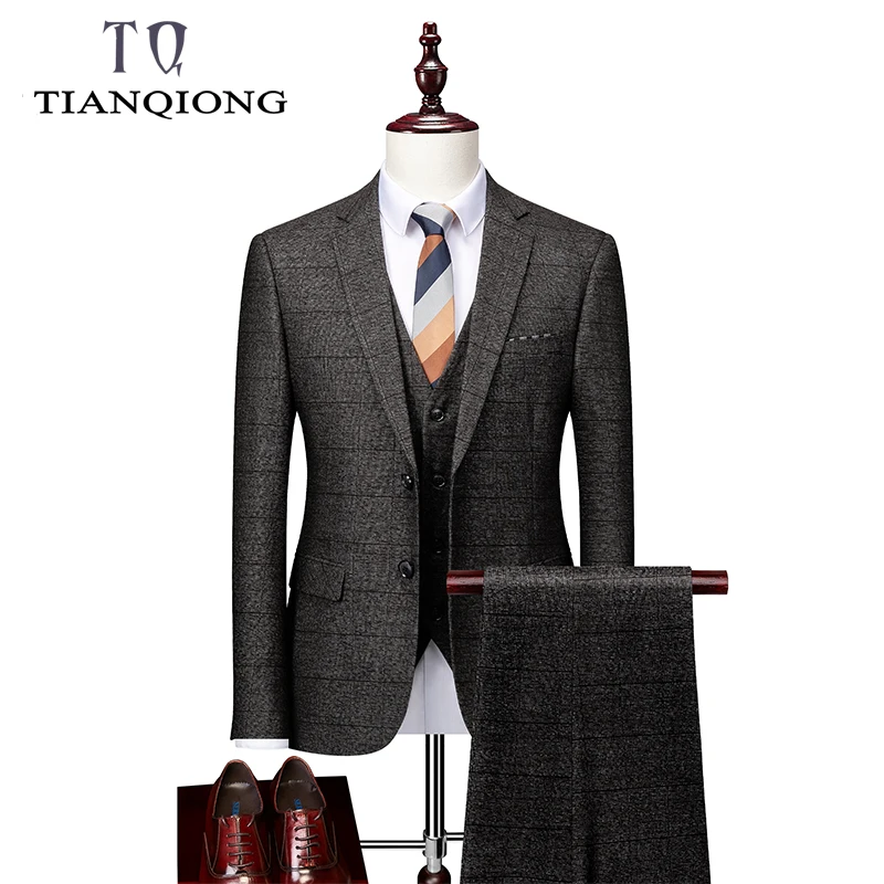TIAN QIONGбрендовый серый клетчатый костюм для мужчин, приталенный костюм из трех предметов, свадебное платье 2020, официальные костюмы, Модный деловой Повседневный S-4XL