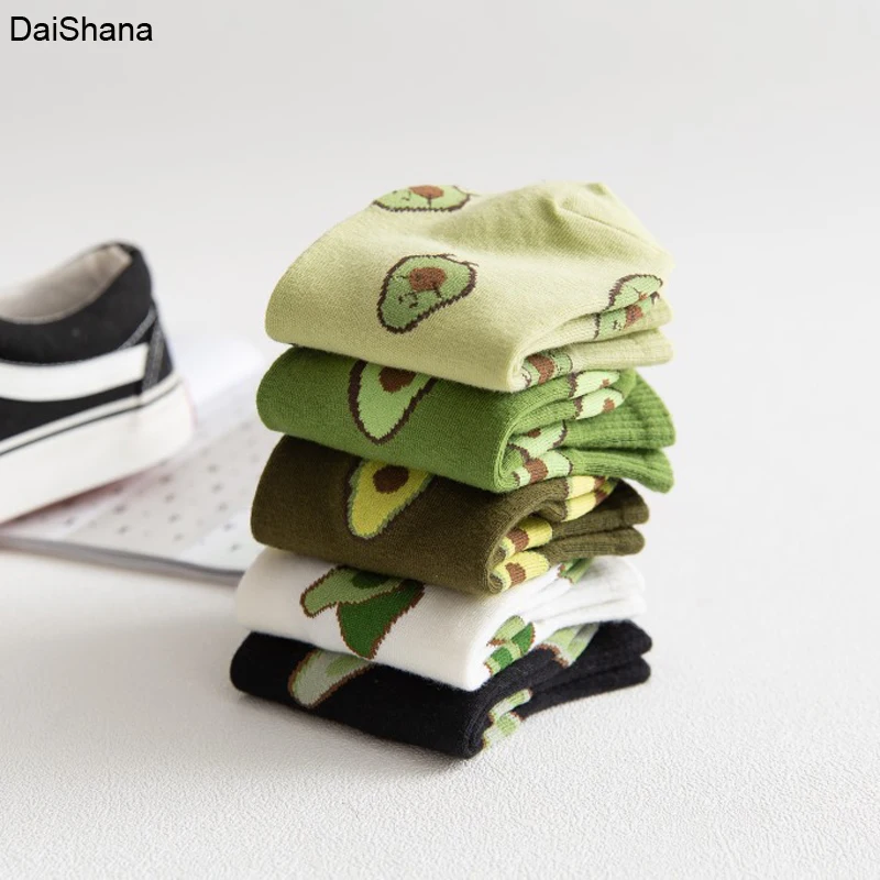 Носки женские хлопковые с вышивкой авокадо, дышащие школьные Смешные до щиколотки для девочек, в стиле Харадзюку, 5 пар, весна-лето
