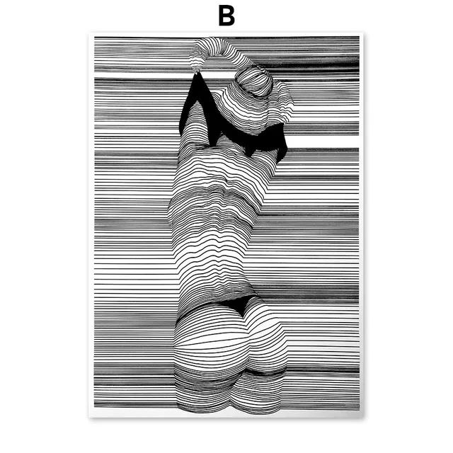 Скандинавская Абстрактная Картина на холсте Сексуальная эскизная линия женщина плакат современные волнистые черно-белые картины настенное украшение фрески